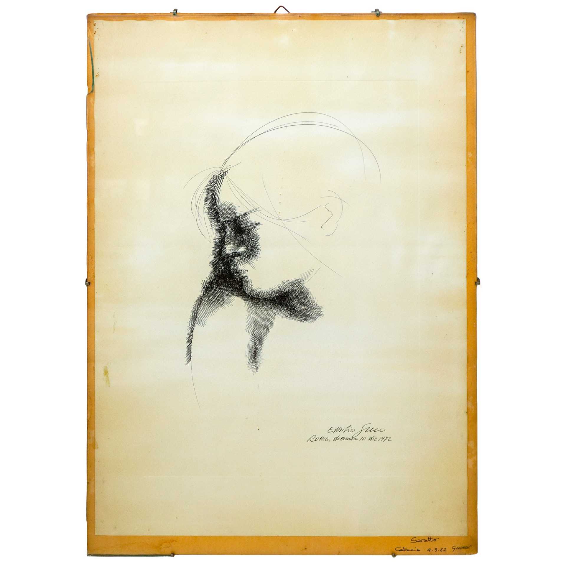 Emilio Greco (Catania 1913 - Roma 1995) - Volto di ragazza h mm 418X300 disegno Firmato in basso a destra. Opera sprovvista di cornice