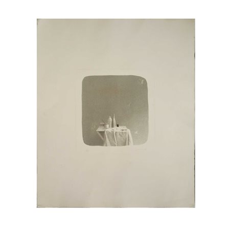 Gianfranco Ferroni (1927 - 2001) - Senza titolo (Altarino metafisico) cm 60x50 , senza cornice Acquaforte e acquatinta eS. 35/100 Firmata , datata e numerata al fronte
