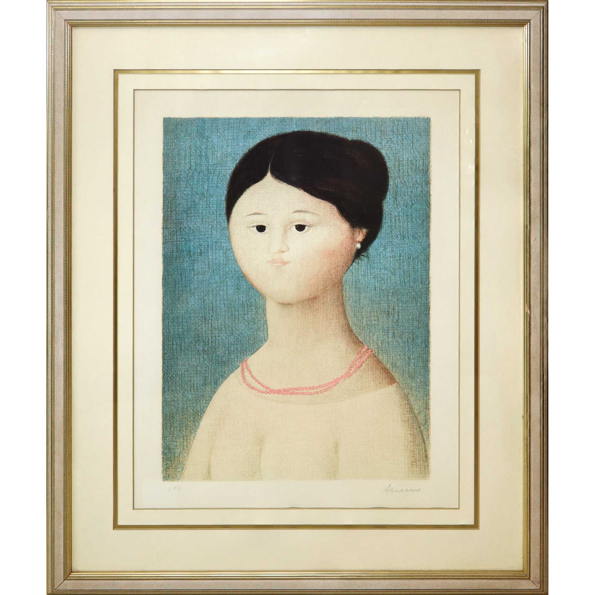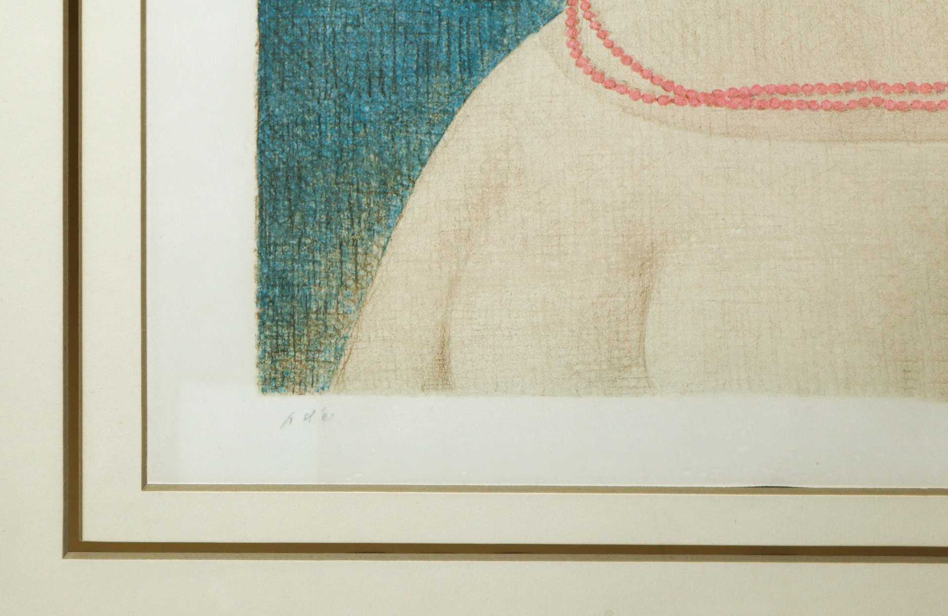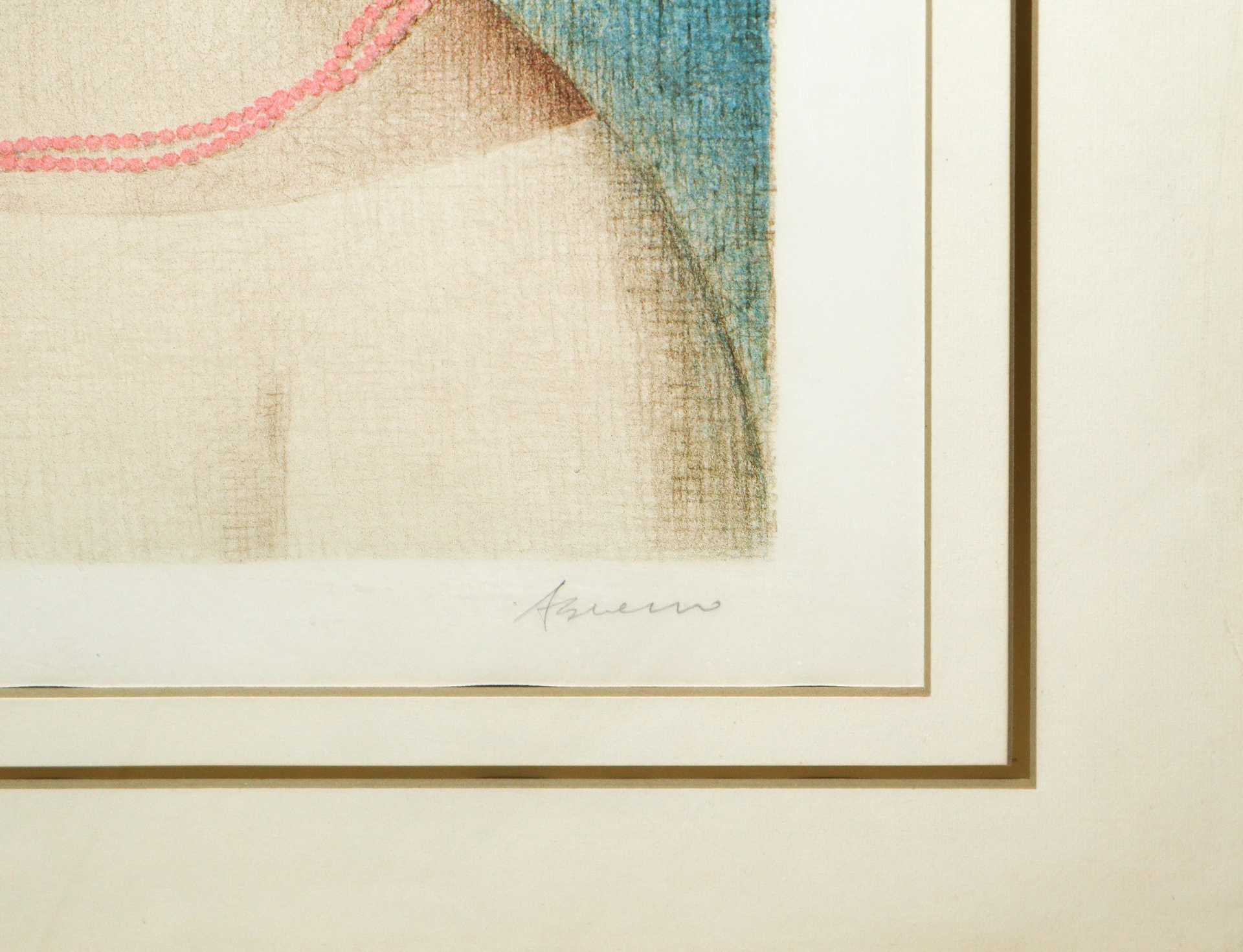 Antonio Bueno (berlino 1918 - Firenze 1984) - Donna con collana rosa h cm 65X50 in cornice h cm 88X75 Prova d'Autore litografia Firmato in basso a destra