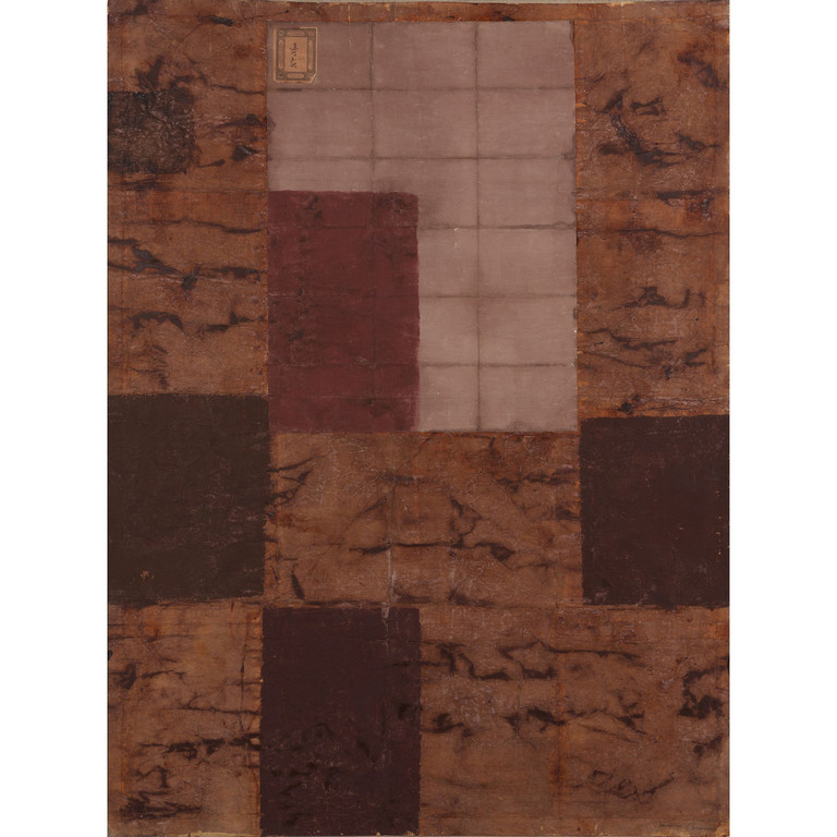 mixed media and collage on Japanese paper on canvas 60 43x44 88 in