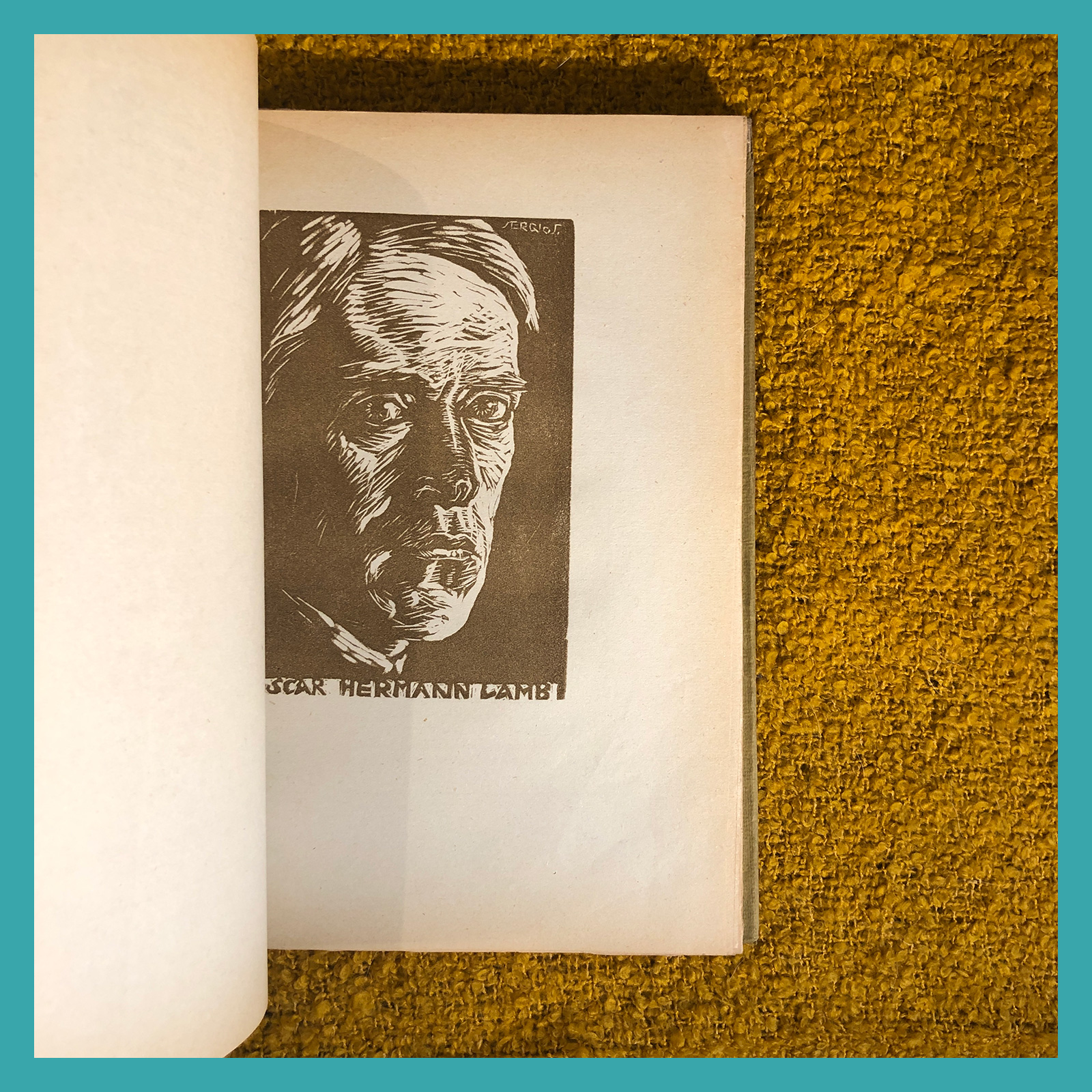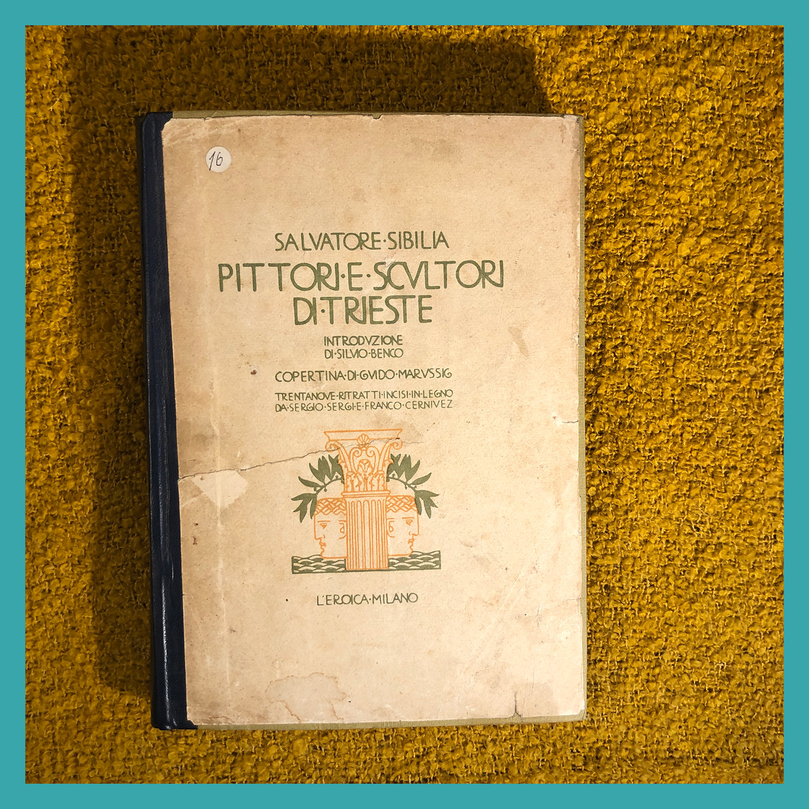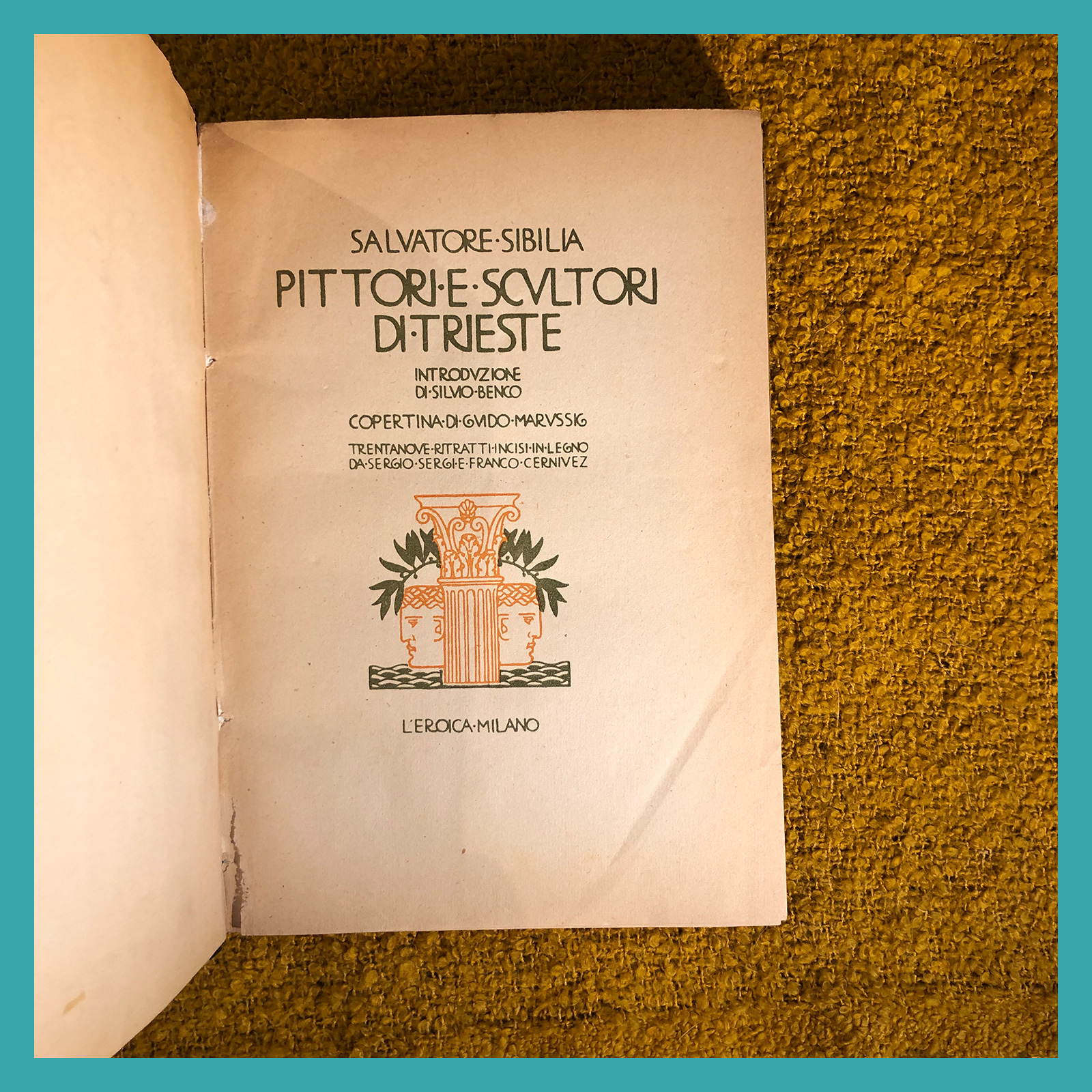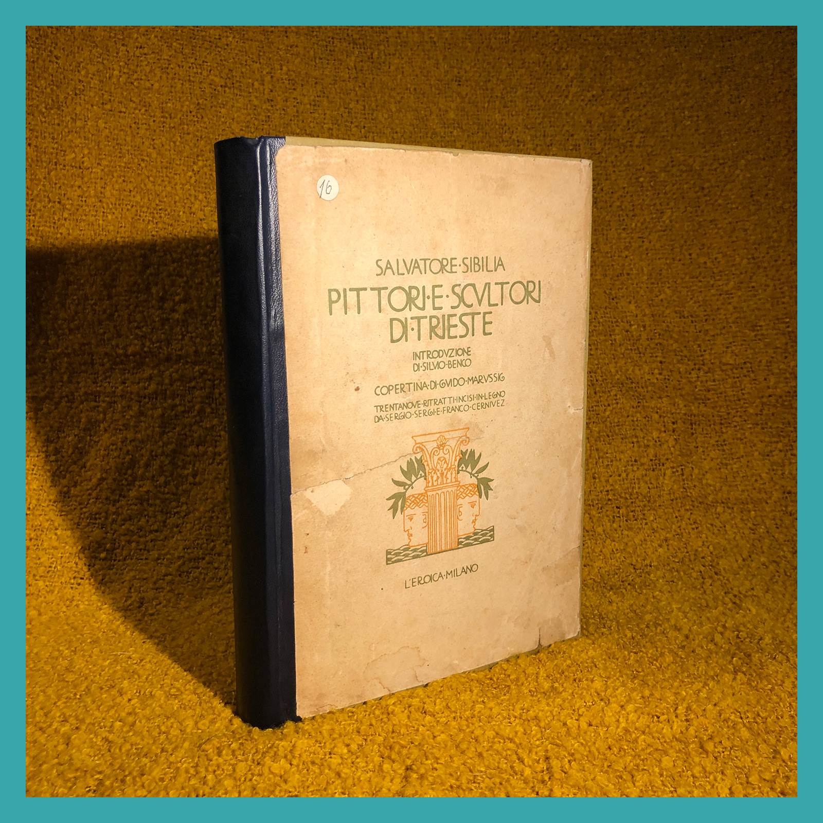 S. Sibilia, Pittori e scultori di Trieste, introduzione di Silvio Benco, Copertina di Guido Marussig, trentanove ritratti incisi in legno da Sergio Sergi e Franco Cernivez, L'Eroica Milano, Milano 1922, rilegatura postuma, cm 25,2x18.