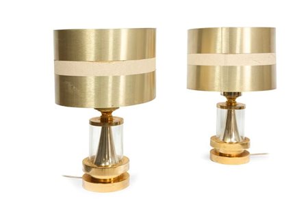 PRODUZIONE ITALIANA Coppia di lampade da tavolo in ottone e vetro. Anni '70 h...