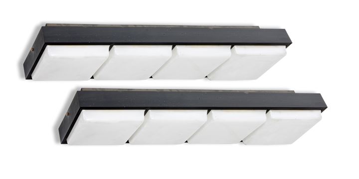 STILUX Coppia di lampade a plafone in metallo laccato, diffusori in perspex....