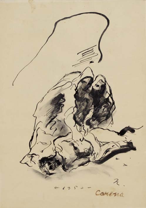 CARENA FELICE Cumiana (TO) 1879 - Venezia 1966 Deposizione 1950 disegno a china su carta 34x24 cm firma e data in basso