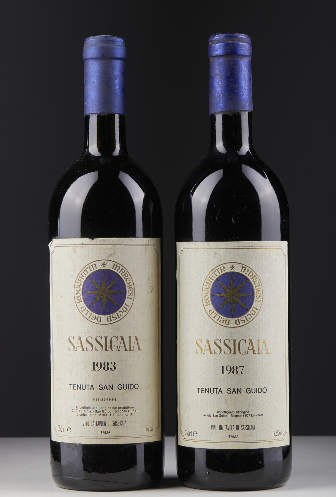 TENUTA SAN GUIDO SASSICAIA, 1983-1987. VINI. . Due bottiglie (2bt)- 750 ml ciascuna