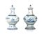 Coppia di vasi con coperchio in maiolica bianca e blu, Liguria, XVIII secolo...