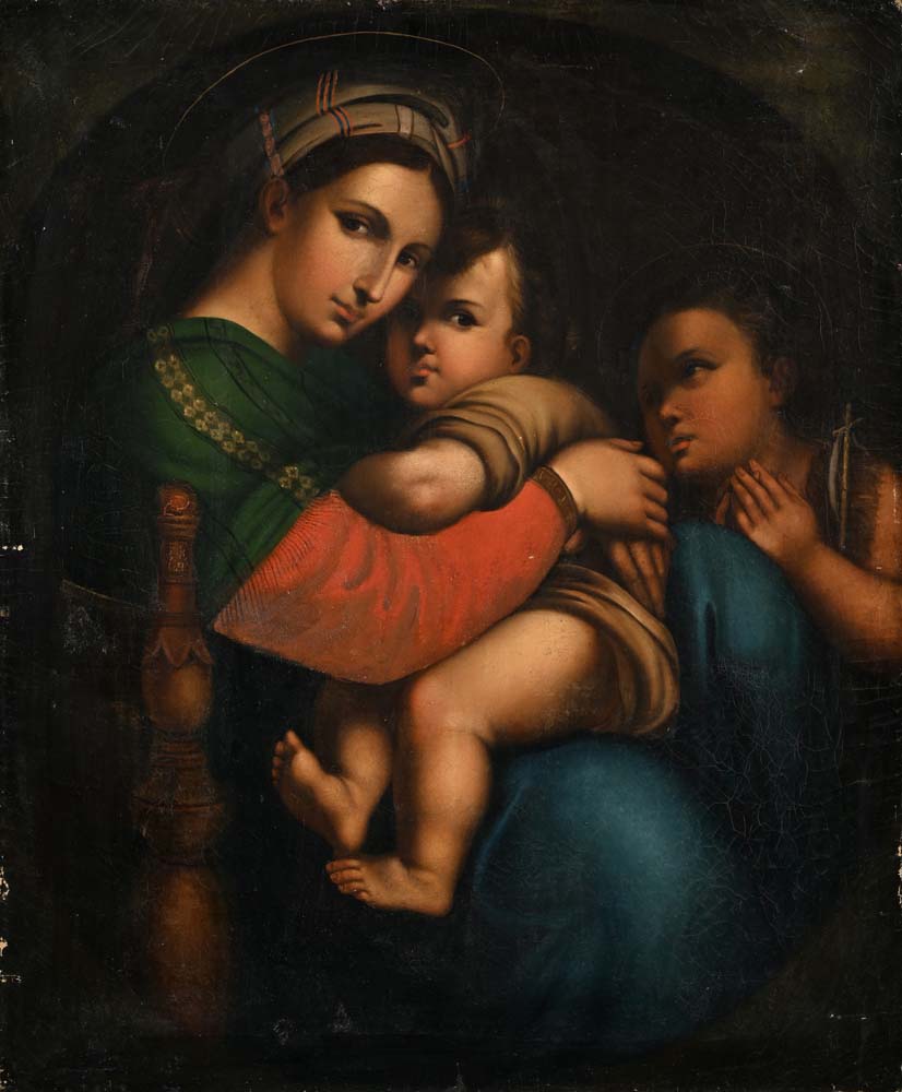 Raffaello Sanzio (copia da) - Madonna della Seggiola seconda metà del XIX secolo Difetti olio su tela cm...
