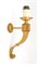 Tre appliques in bronzo dorato ad una luce XX secolo braccio sagomato percorso da scanalature con parte superiore a dado centrato da corolla ed estremità inferiore a ricciolo