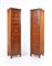 Coppia di cassettiere "Wellington" in mogano, Inghilterra, XIX secolo dalla caratteristica struttura verticale, uno con dieci cassetti di diversa profondità e l'altro con sportello decorato a simulare dodici tiretti e ripiani interni; piedi a trottola.