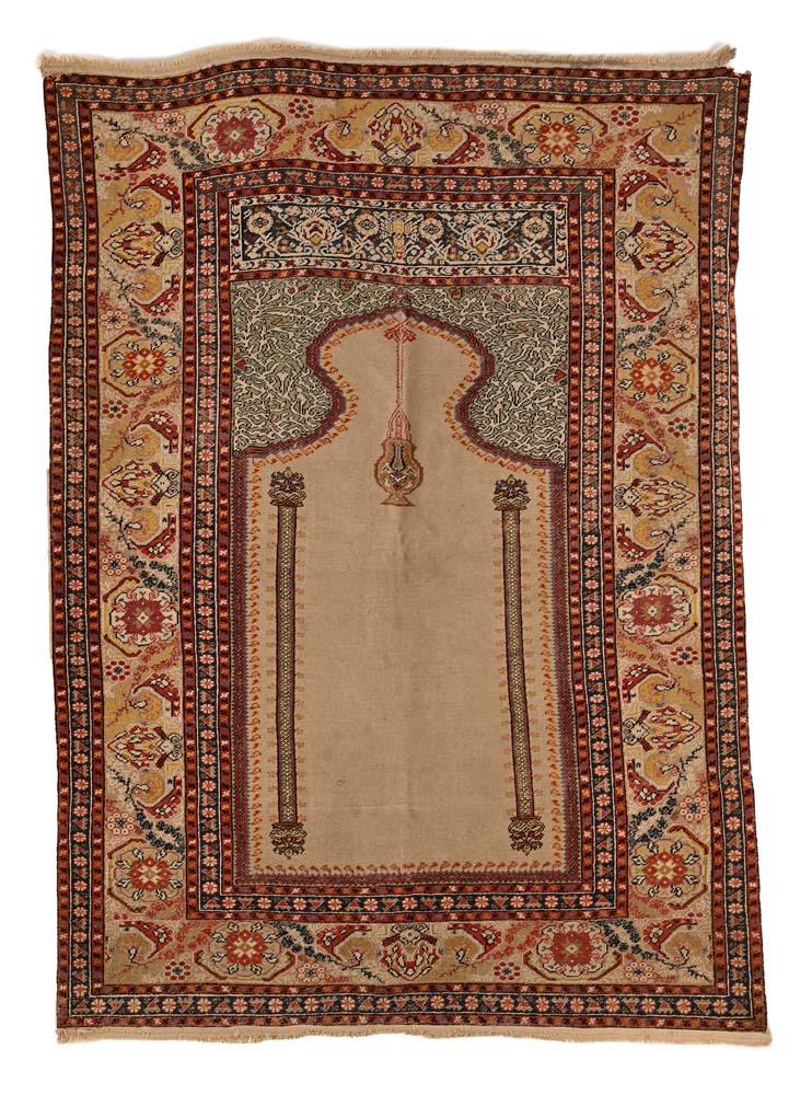 Tappeto da preghiera Kaiseri fondo avorio, Anatolia, inizi del XX secolo...