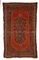 Tappeto persiano fondo rosso con uccellini medaglione centrale cuspidato con profilo mistilineo e fitto disegno stilizzato su fondo nero ripetuto lungo la cornice e agli angoli; molteplici bordure. Difetti cm 195x119
