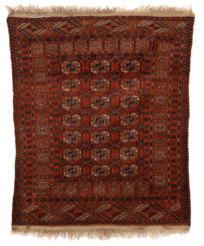 Tappeto turkmeno a disegno Bukhara, inizi XX secolo caratterizzato...