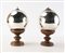 Due wish balls in vetro soffiato argentato, Inghilterra, fine XIX/inizi XX secolo sostegni a rocchetto in legno altezza cm 28