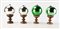 Quattro wish balls in vetro soffiato, Inghilterra, fine XIX/inizi XX secolo due argentate e due verdi su piedistalli in legno tornito altezza cm 26