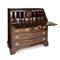 Cassettone a ribalta con filettature ed intarsi in legno di frutto, Olanda, XVIII secolo di linea squadrata con specchiature incorniciare da filettature lineari e ribalta decorata da un arco con faretra sormontati da un grande fiocco con lembi svolazzanti; all'interno si dispongono sei cassettini allineati di linea sagomata, un'anta centrale delimitata da colonne scanalate affiancata da tre vani e sette tiretti sottostanti; facciata con due cassetti in linea e due in colonna con maniglie in bronzo dorato, piedi a mensola. Difetti cm 111x112x47 - aperto cm 82