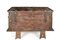Cassone in legno con applicazioni in rame ed ottone incisi, arte coloniale indo-portoghese, XVIII secolo piedi anteriori sferici, posteriori a mensola