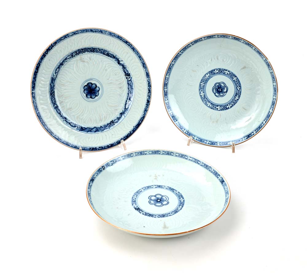 Lotto 327 | Tre piatti simili in porcellana bianca e blu, Cina, XVIII secolo due ciotole...