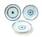 Tre piatti simili in porcellana bianca e blu, Cina, XVIII secolo due ciotole ed un piatto piano dalle analoghe caratteristiche decorative; al centro una corolla entro sottili centri concentrici e due cornici con fitta ornamentazione stilizzata diametro cm 22 e cm 22,5