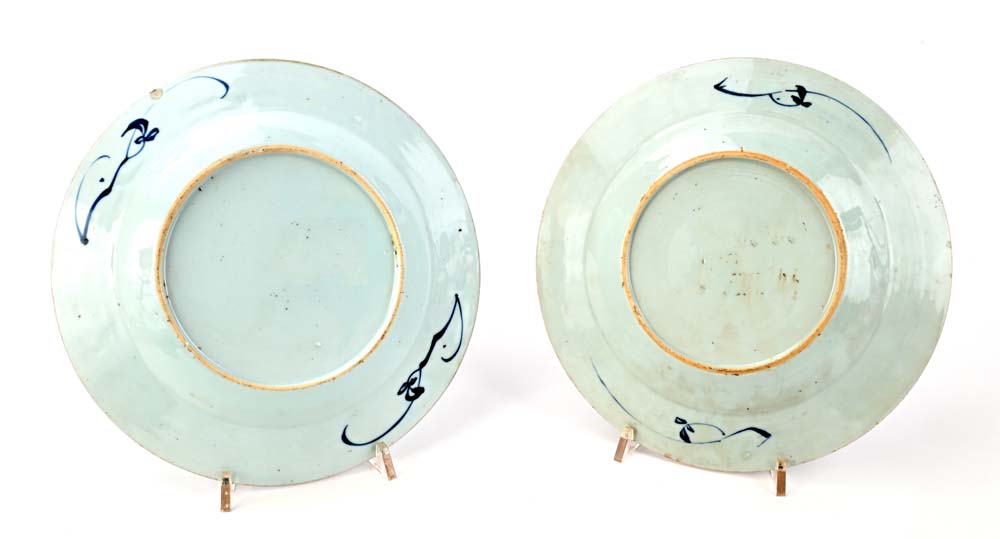 Due piatti diversi in porcellana bianca e blu, Cina, XVIII secolo decorati...