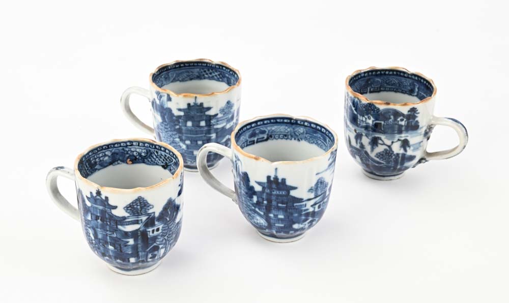 Quattro tazzine "demitasse" in porcellana blu e bianca, Cina, XVIII secolo di...