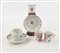 Quattro tazzine in porcellana policroma di cui due senza piattino, Compagnia...