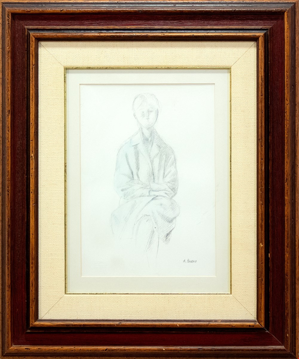 Antonio Bueno, Senza Titolo, Matita su base serigrafica, 35x25 cm, Archiviazione presso Archivio Fotografico Generale delle opere di Antonio Bueno, Timbro a secco Archivio al recto, Firma al recto, Cornice in omaggio