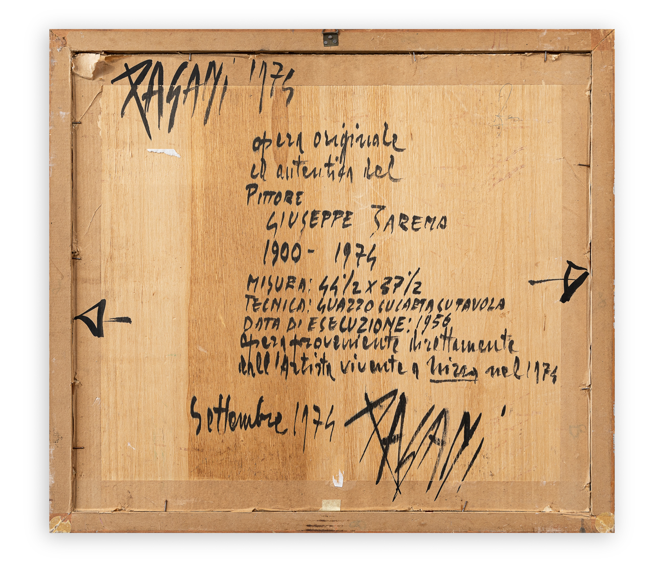 Firma e dichiarazione di autenticità del gallerista Pagani al retro