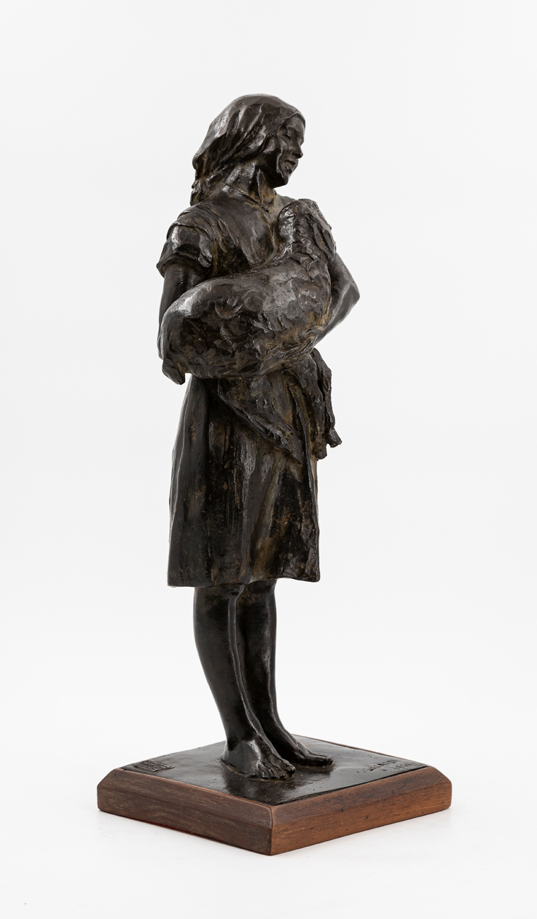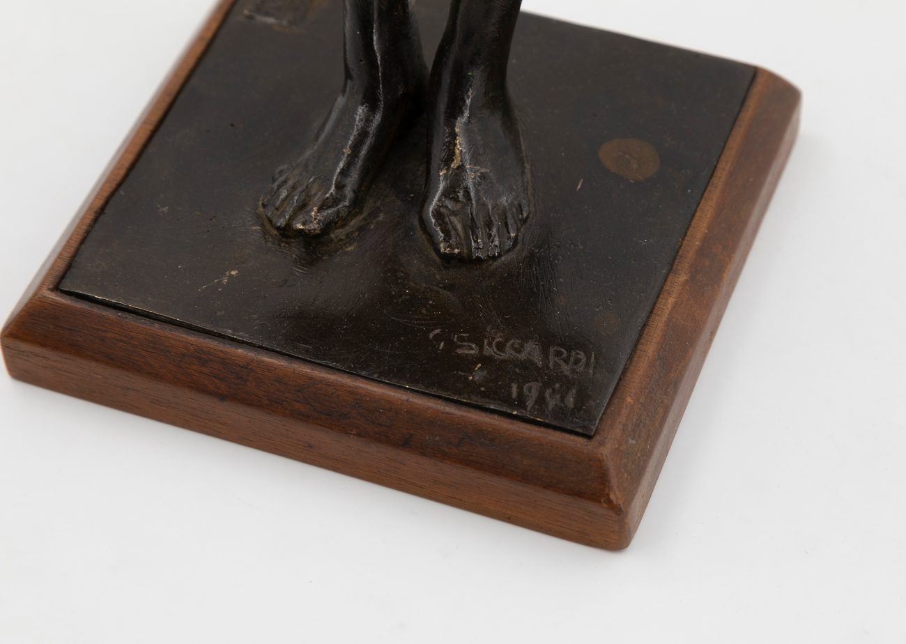 Scultura in bronzo su base in legno