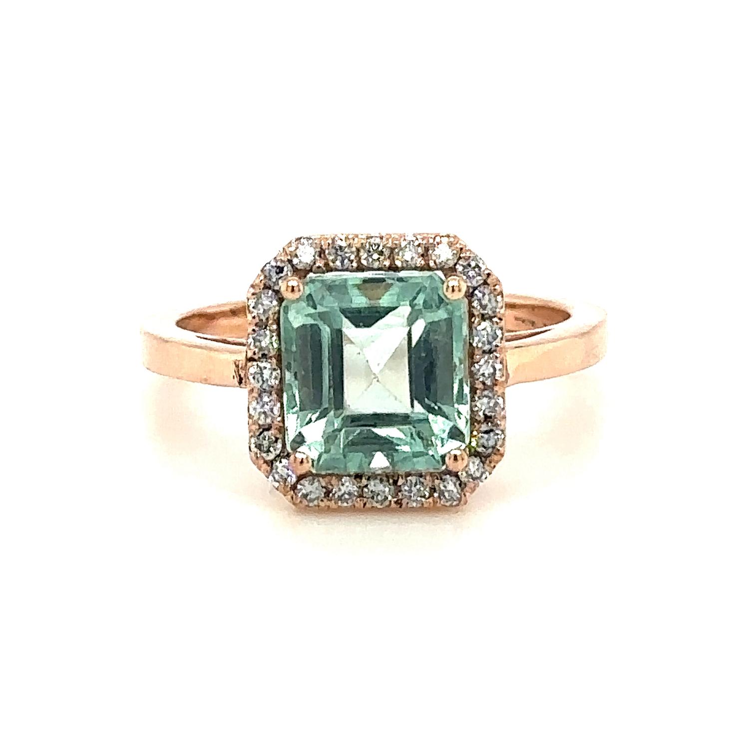 ANELLO IN ORO ROSA 14K 3,94 GR CON SMERALDO NATURALE 2,33 CT E DIAMANTI NATURALI PER 0,24CT COLORE G-H PUREZZA SI - TAGLIA - 7 - RNG40303
