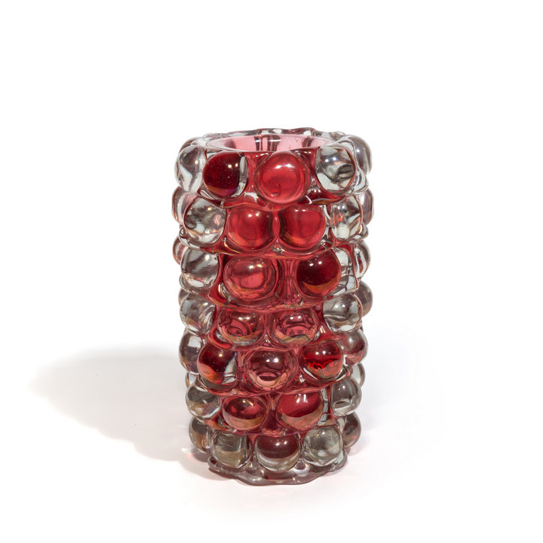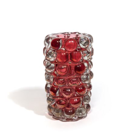Un vaso 'Lenti' in cristallo iridato e rubino decorato a semisfere.