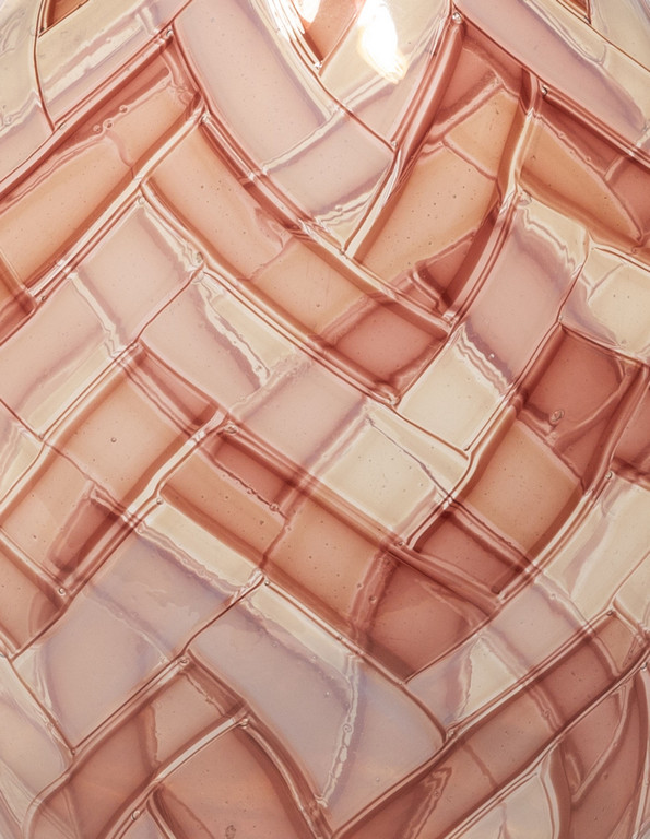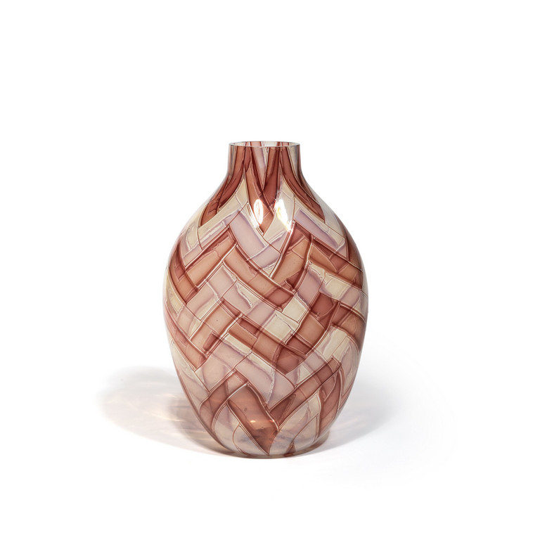 Un vaso della serie 'A spina' a tessere rettangolari opalino e ametista