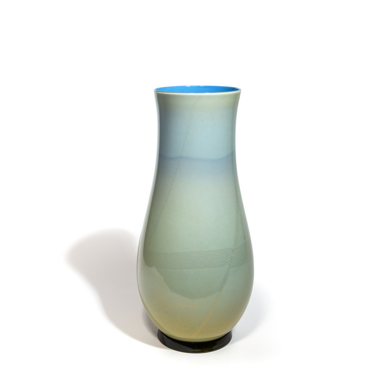 Un vaso 'Aurato' in vetro incamiciato con foglia oro.