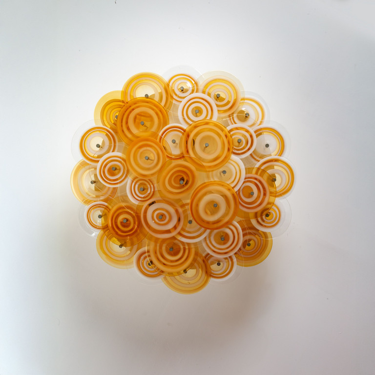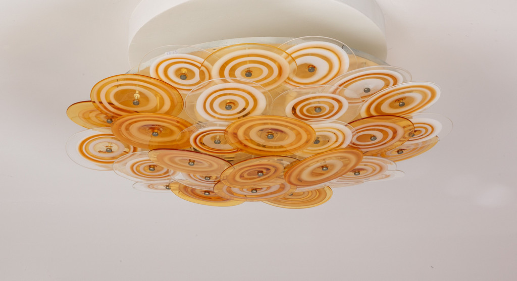 Structure in painted sheet metal transparent straw glass with bands of lattimo glass.
