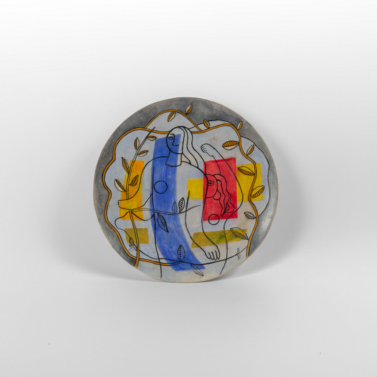 Un piatto in terracotta dipinto 'Composizione alla Leger 1940'.
