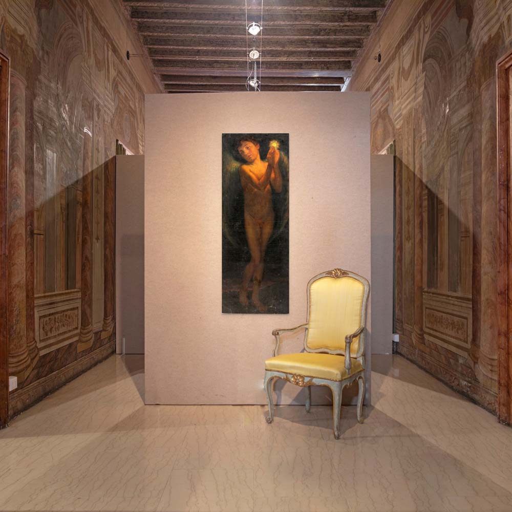 J.B. Feuge (Scuola europea fine XIX-inizi XX secolo) L'angelo sulla città Firmato e datato in basso a sinistra: 'J B Feuge ...'. Olio su tela, senza cornice cm 143,6 x 54,5