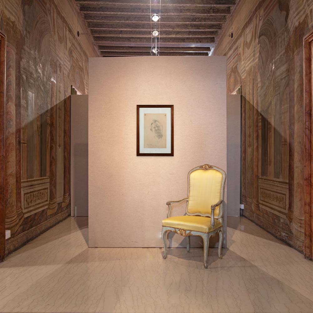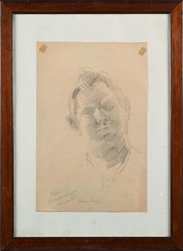 Alessio Issupoff Vjatka 1889 - Roma 1957 Autoritratto Scritte in cirillico in basso a sinistra e firmato: 'Alessio Issupoff.' in basso al centro. carboncino su cartoncino cm 45 x 29,3 - in cornice cm 66,5 x 49