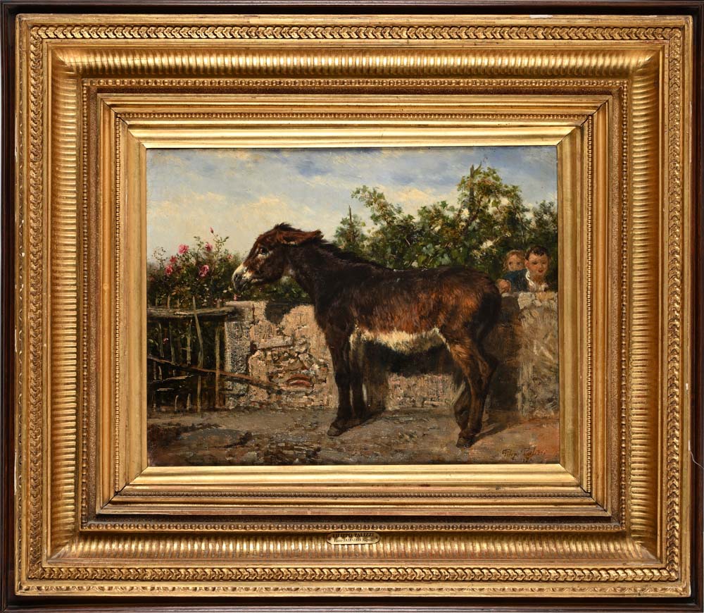 Filippo Palizzi Vasto 1818 - Napoli 1899 L'asinello solleticato Firmato e datato in basso a destra: 'Filip. Palizzi / ... '.