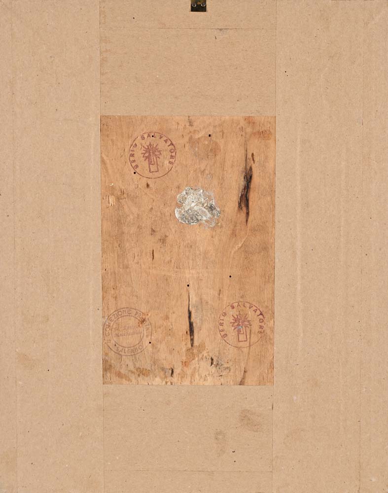 Sul retro timbri 'SERIO SALVATORE' e 'COLLEZIONE MACCHIARULO, SALERNO' Olio su tavola cm 21 x 14 - in cornice cm 33.5 x 26.5 Salvatore Serio, Napoli;