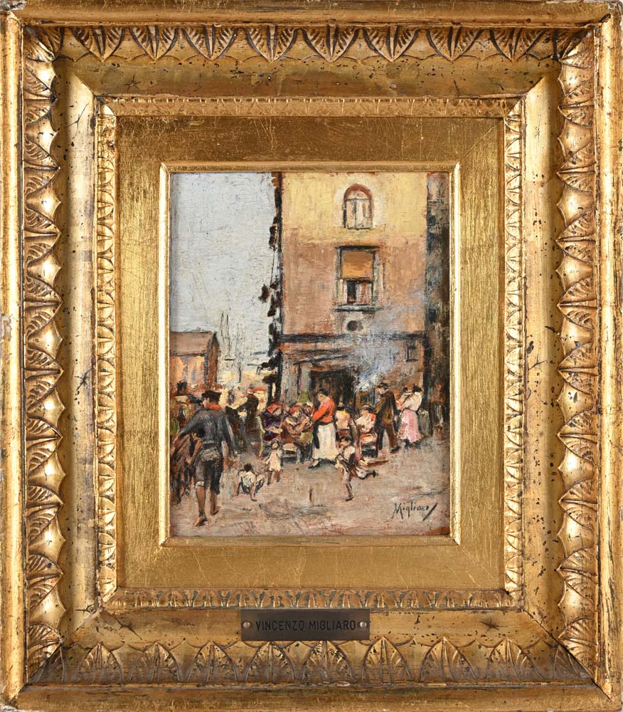 Vincenzo Migliaro Napoli 1858 - Napoli 1938 Vicolo napoletano Firmato in basso a destra: 'Migliaro'.