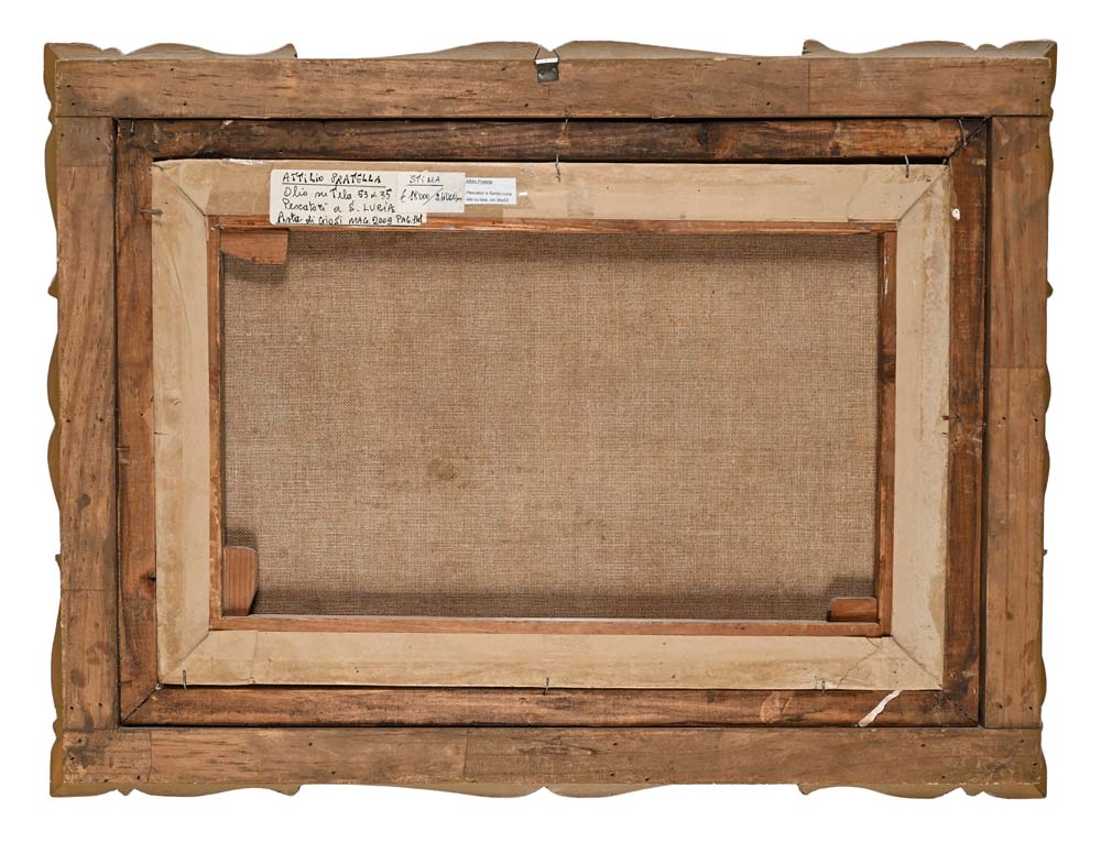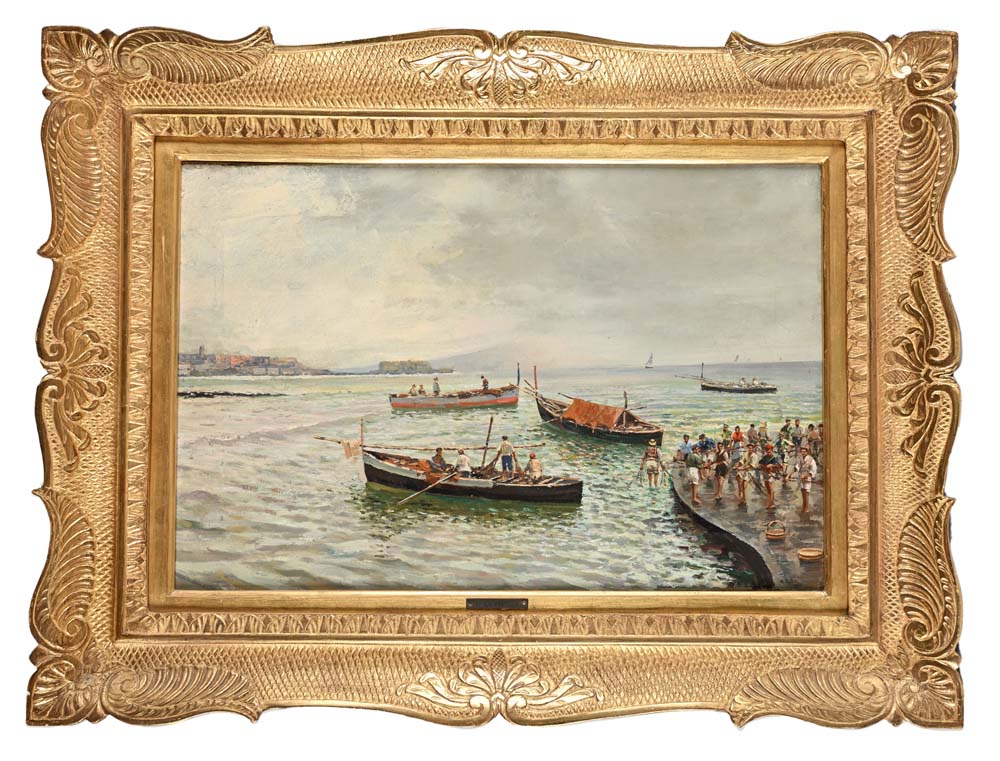 Attilio Pratella Lugo 1856 - Napoli 1949 Napoli, pescatori a Santa Lucia firmato in basso a destra: 'A. Pratella' olio su tela cm 35 x 53 - in cornice cm 53,5 x 71 Asta Giosi, Napoli, maggio 2009, p. 141 del catalogo.