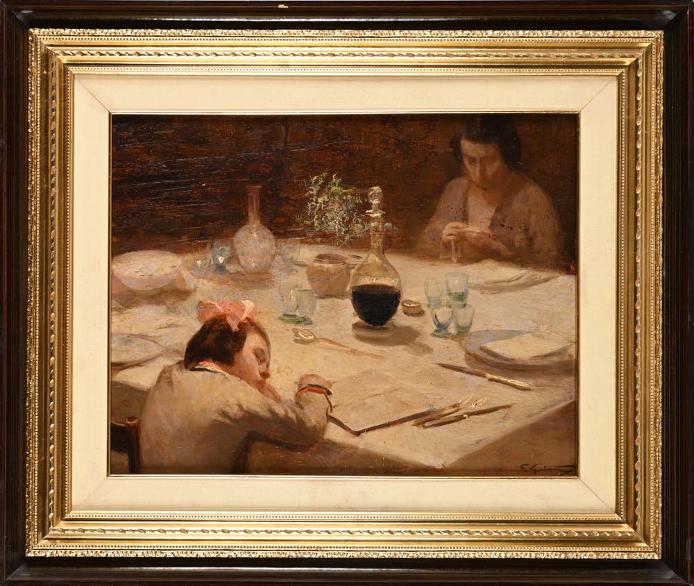 Francesco Galante Santa Margherita Di Savoia 1884 - Napoli 1972 Un momento di riposo Firmato in basso a destra: 'F. Galante'.