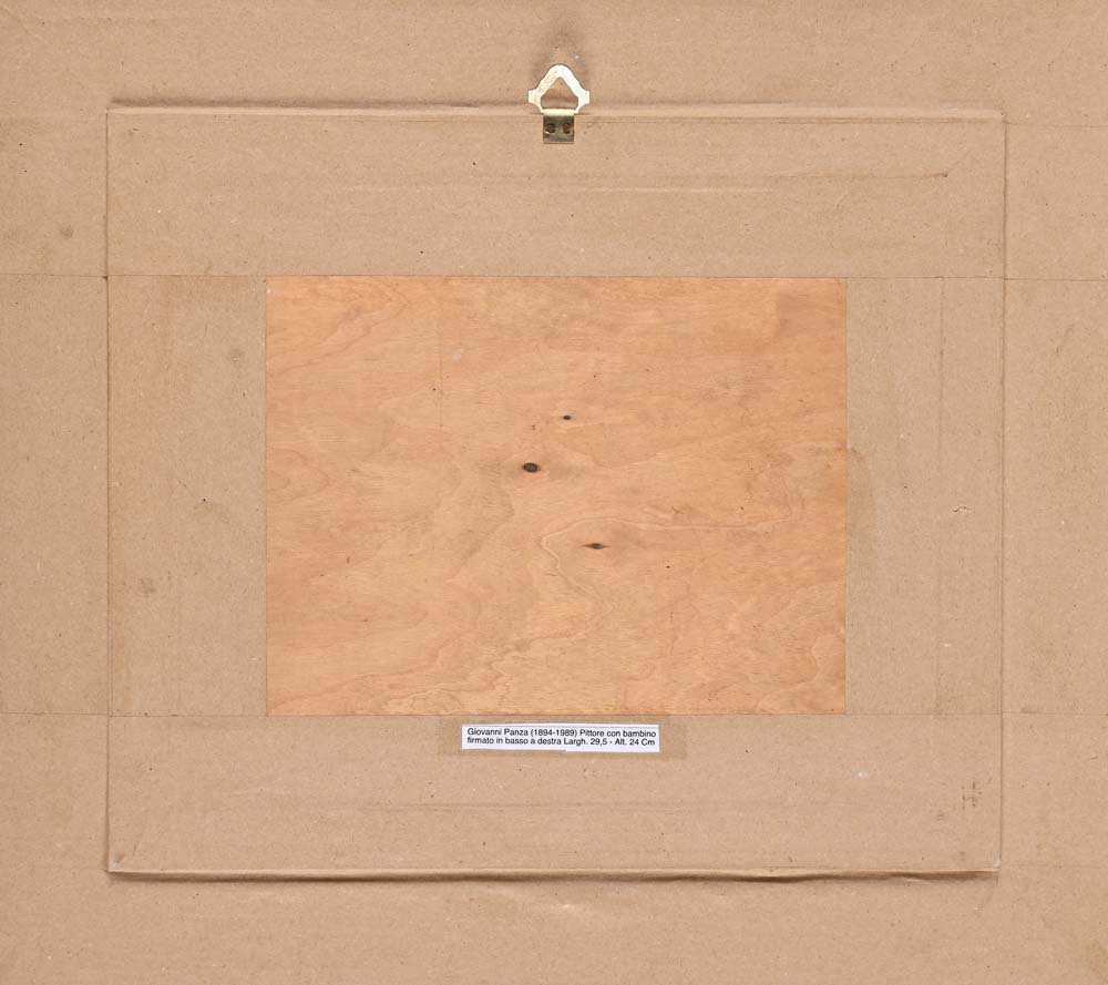 Giovanni Panza Miseno 1894 - Napoli 1989 Nello studio del pittore Firmato in basso a destra: 'G. Panza.'  Olio su legno cm 24 x 29,5 - in cornice cm 39,5 x 44,5