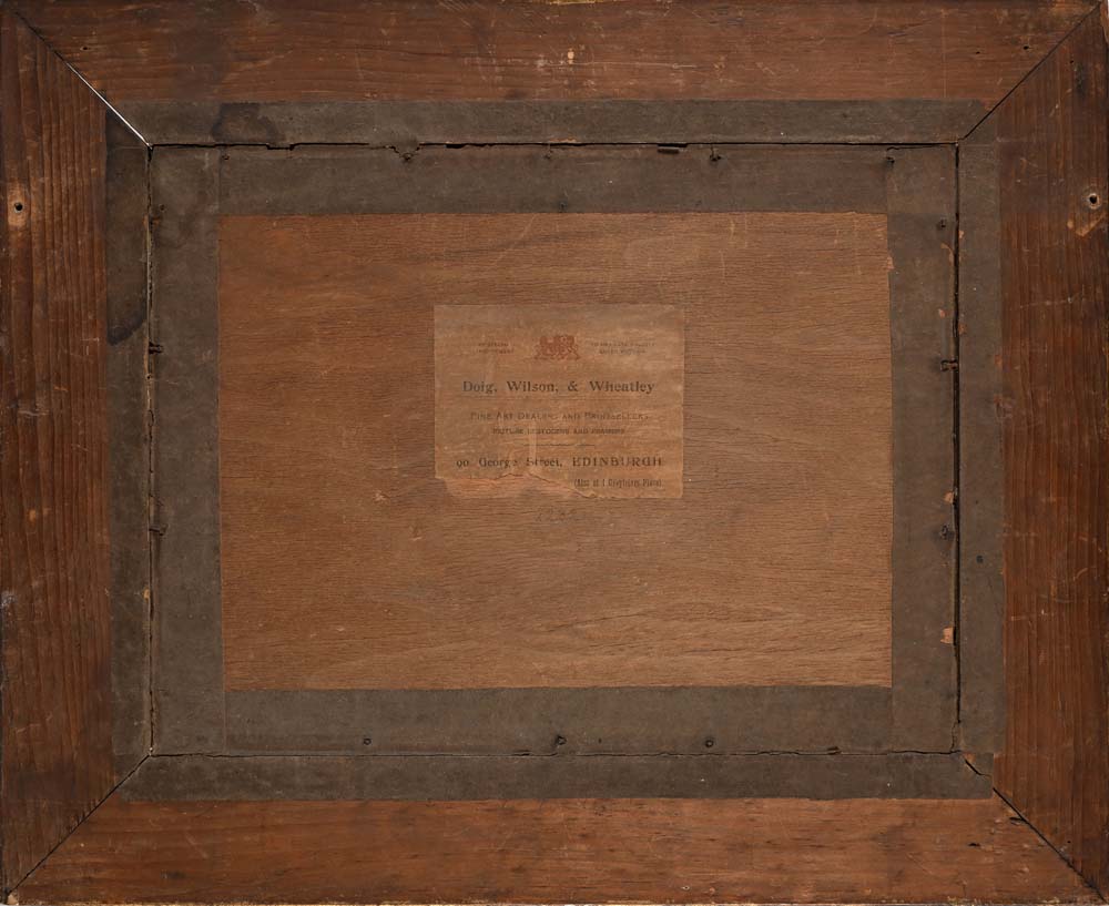 Sul retro, sul legno di supporto, antico cartellino a stampa 'Doig, Wilson, & Wheatley / Edinburgh'. acquerello su cartoncino cm 26,5 x 35,5 - in cornice cm 42 x 51
