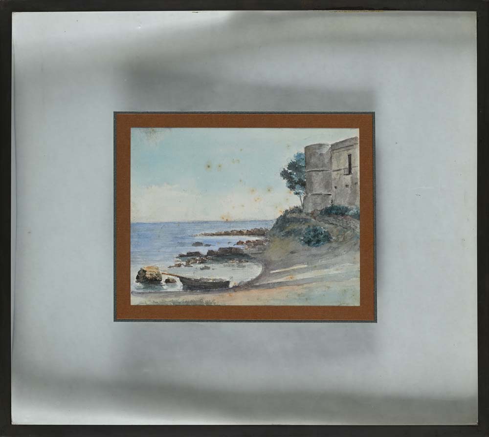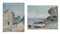 Scuola Italiana fine del XIX inizi del XX secolo a) Marina b) Strada con chiesa a) Veduta costiera con barca ed edificio.