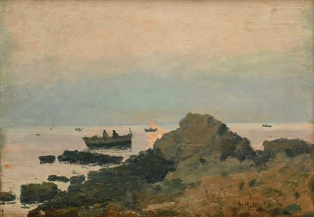 Michele Catti Palermo 1855 - Palermo 1914 Costiera siciliana Firmato in basso a destra: 'M Catti.'. olio su legno cm 43,5 x 33,5 - in cornice cm 64 x 54