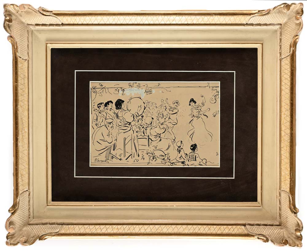 Pietro Scoppetta Amalfi 1863 - Napoli 1920 La tarantella Firmato in basso a sinistra: 'P. Scoppetta'. China su cartoncino cm 16 x 24 - in cornice cm 44 x 54