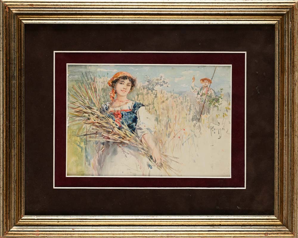 Pietro Scoppetta Amalfi 1863 - Napoli 1920 La raccolta del grano Firmato al centro del margine destro: 'P. Scoppetta'.