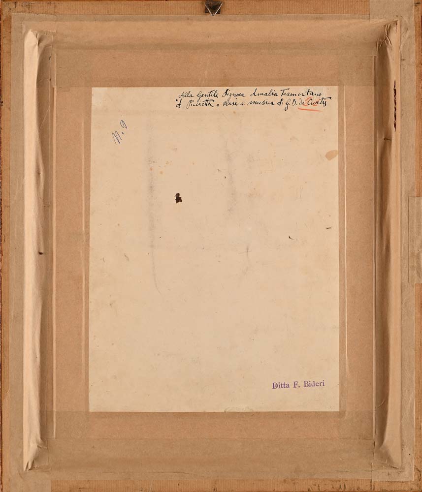 Sul retro timbro 'Ditta F. Bideri' e dedica manoscritta.