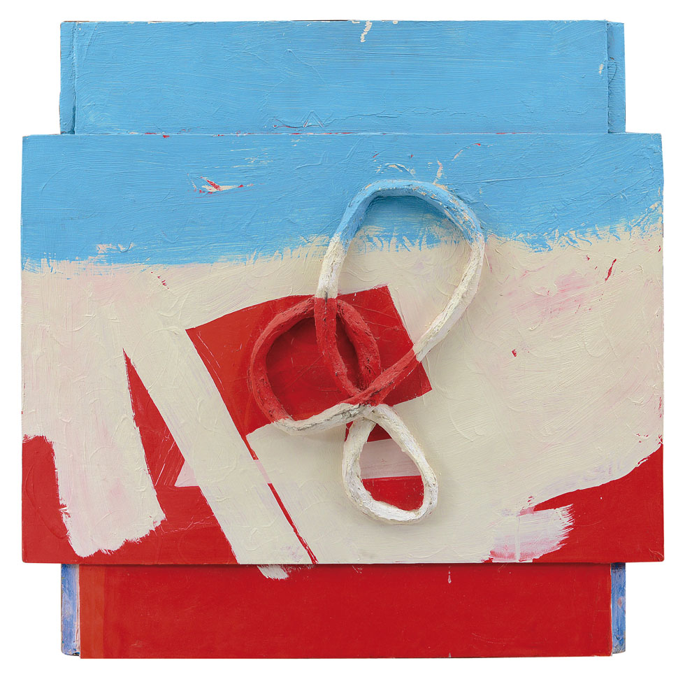 olio e applicazioni su tavola cm. 60,2x60,2x4, firma e anno al retro, dichiarazione d'autenticità dell'artista su foto, opera priva di cornice.