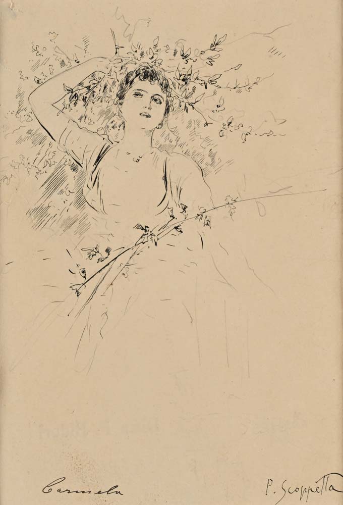 Pietro Scoppetta Amalfi 1863 - Napoli 1920 Carmela (Canto sorrentino) Intitolato in basso a sinistra: 'Carmela' e firmato in basso a destra: 'P. Scoppetta'.